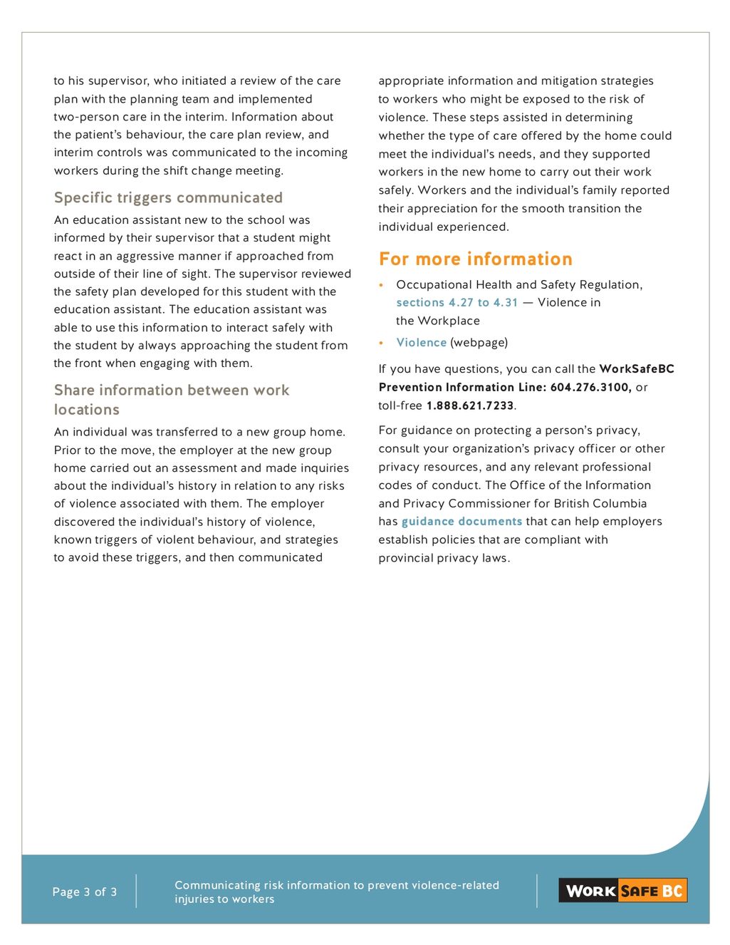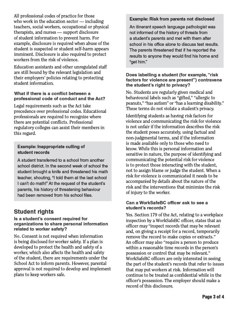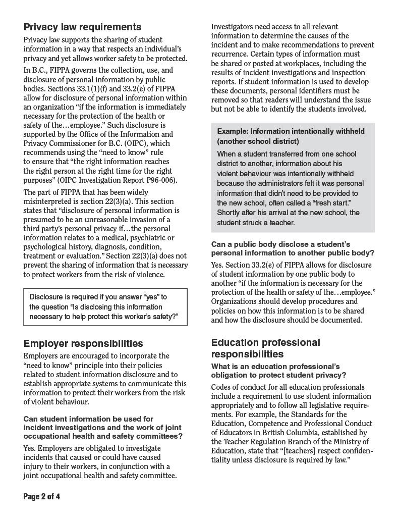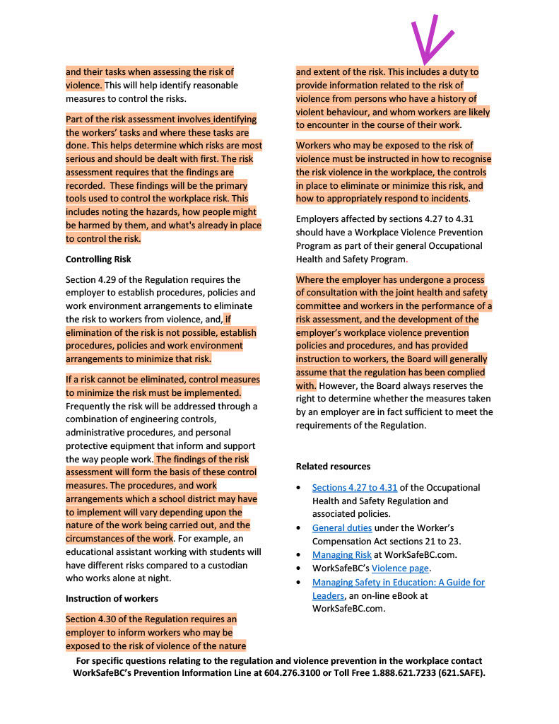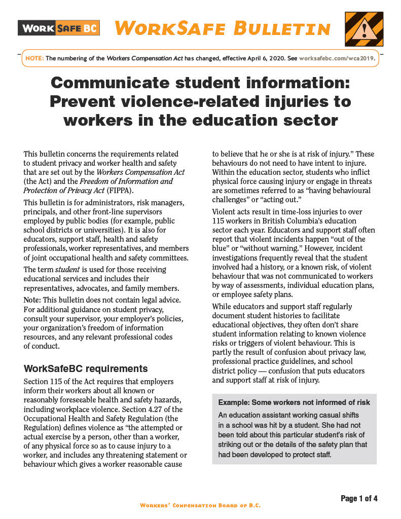 Link: WorkSafe BC Violence in Schools.